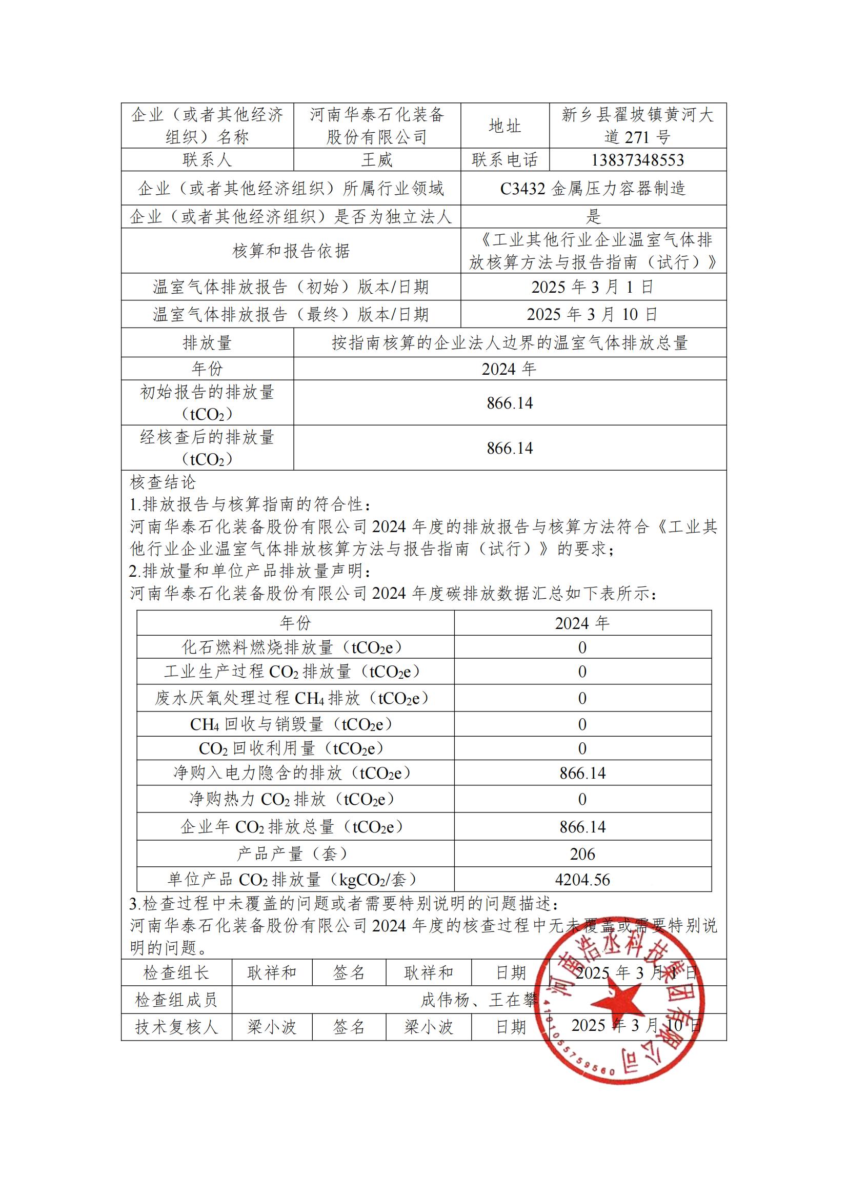 您當前的位置 : 首頁 > 新聞中心> 河南華泰石化裝備股份有限公司碳核查報告